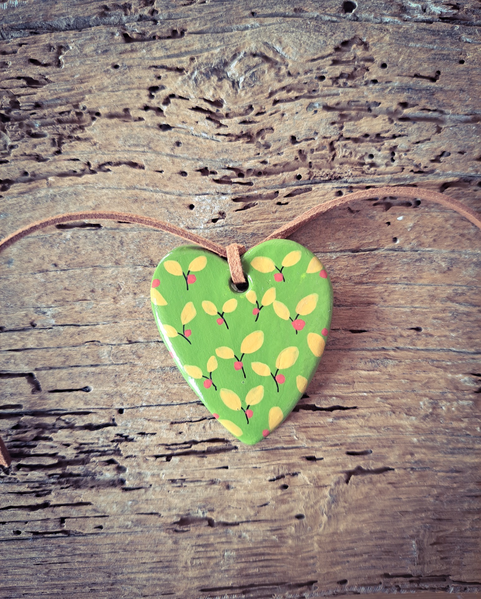 Ručně malované modelované srdce. Vhodné k zavěšení na dveře, květináč, okno..., průměr 5 cm.