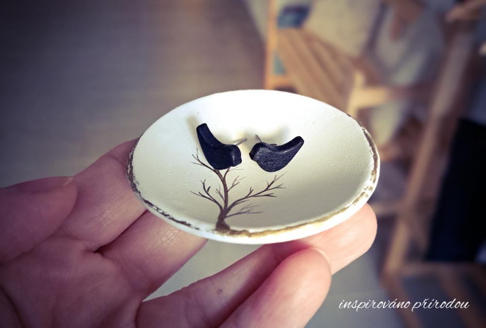 Náušnice ptáčci jsou z dubového dřeva, barvené černou akrylovou barvou a zalakované závěrečným lakem. Zapínání je chirurgická ocel, průměr náušnic je cca 7 mm.