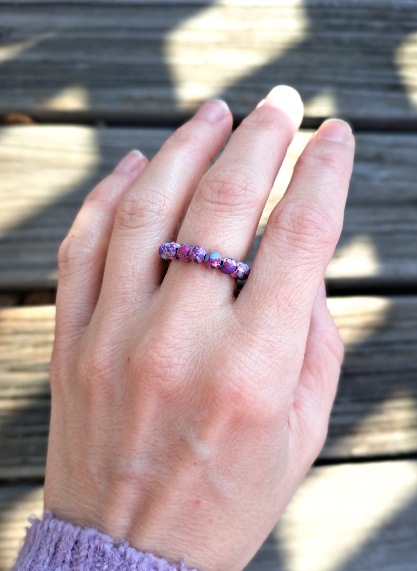 Prstýnek je z minerálního kamene JASPIS REGALIT o průměru 4mm, návlek je pružné lanko. Do poznámek uveďte velikost prstýnku nebo obvod prstu.