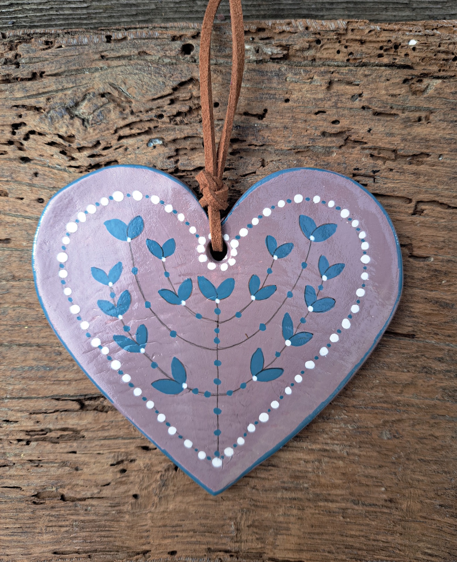 Ručně malované modelované srdce. Vhodné k zavěšení na dveře, květináč, okno..., průměr 9 cm.